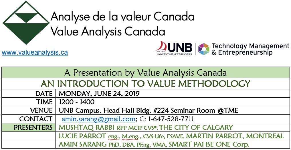 This presentation will provide participants with an understanding of Value Management/ Value Analysis/ Value Engineering and an appreciation of how to benefit by VA and how to participate in Value Analysis.  Value Management/ Value Analysis/ Value Engineering is a facilitated and creative process that generates alternative solutions to problems. The solutions maintain or improve function (what something does), while at the same time maximize value. The process of Value Analysis takes place in a workshop format. This presentation will demonstrate that everyone and every organization can benefit from Value Management/ Value Analysis/ Value Engineering.